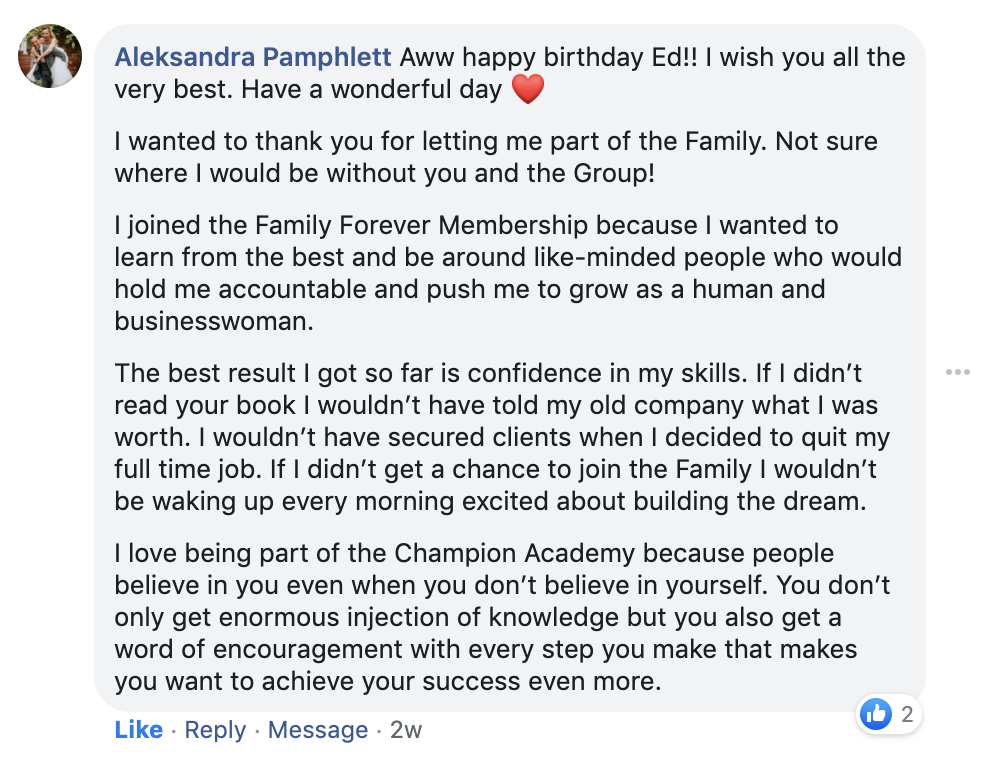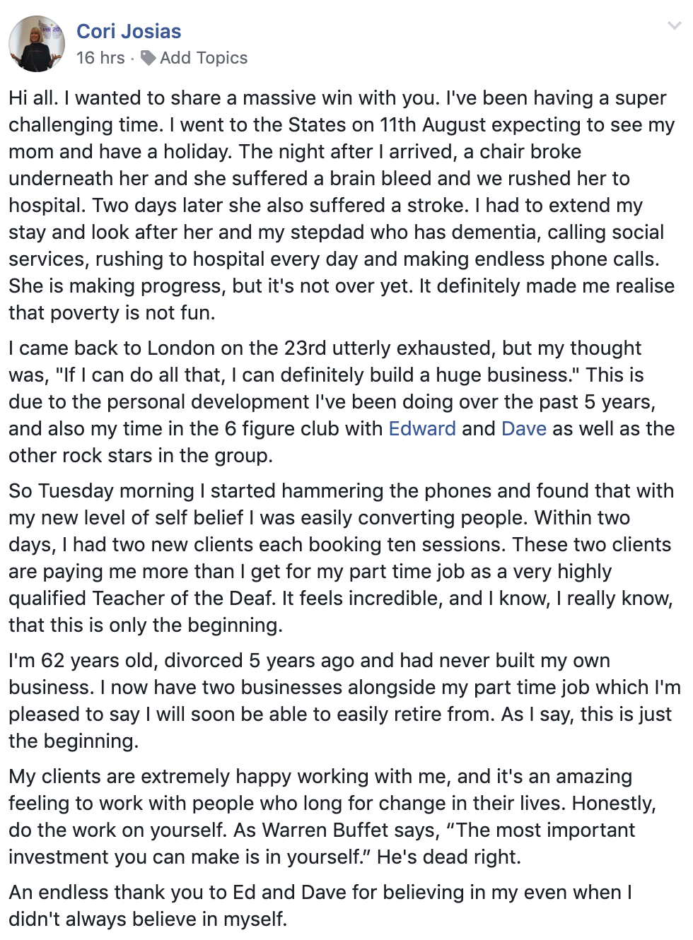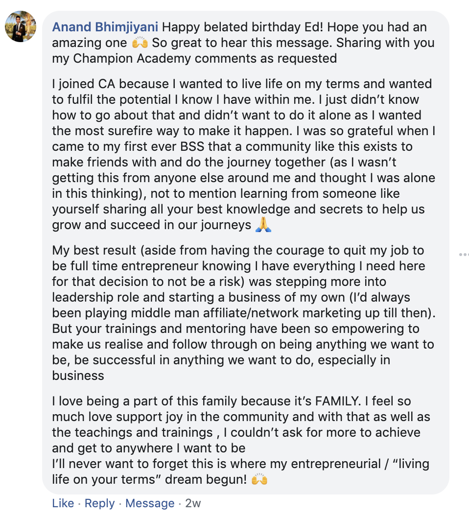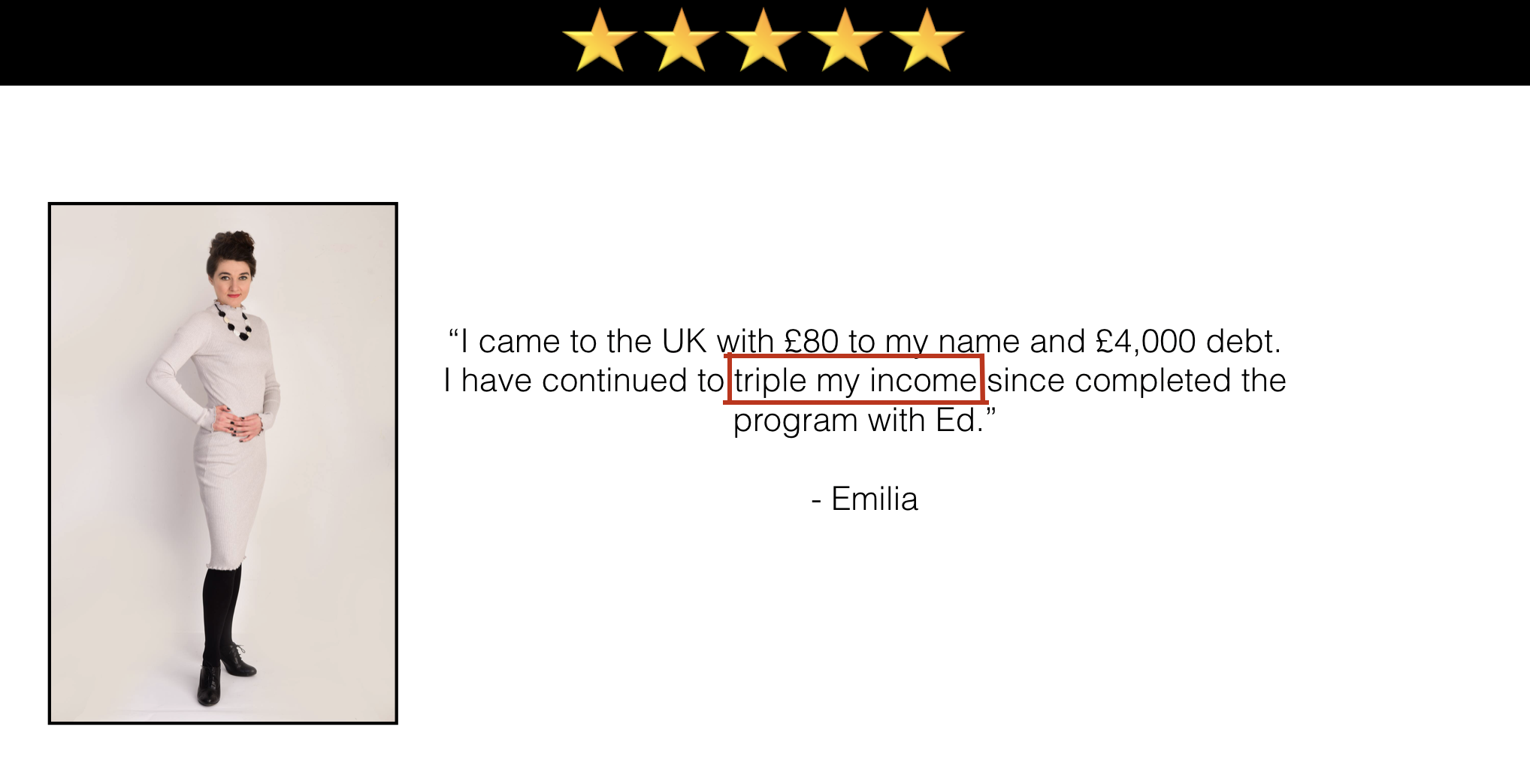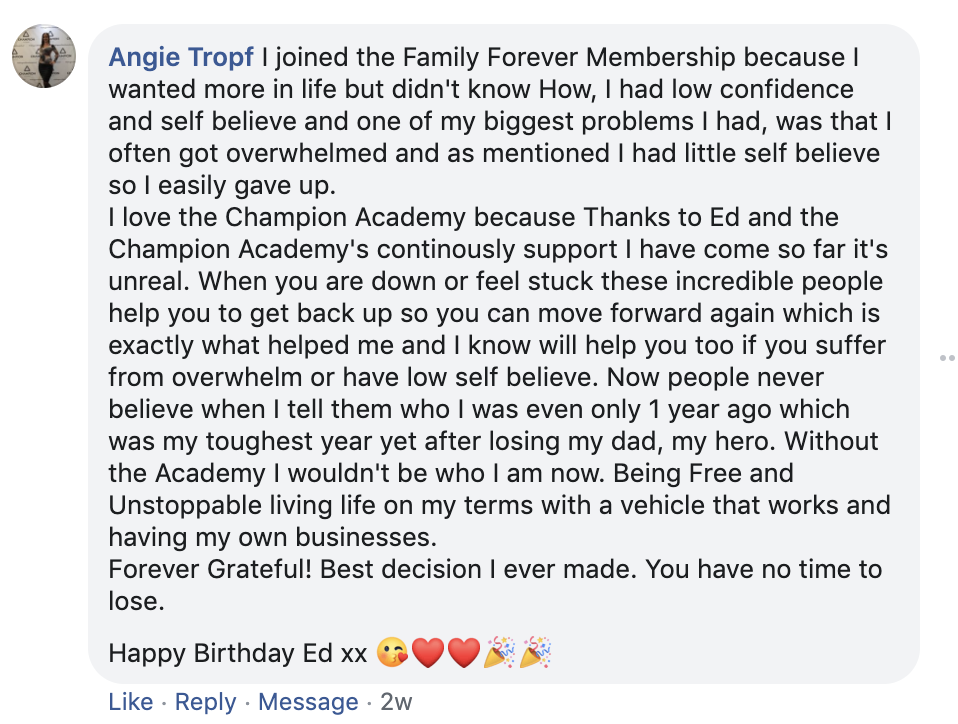 We don't believe in get-rich-quick programs. We believe in commitment, adding value and serving others, and that's what our programs are designed to help you do. As stated by law, we cannot and do not make any guarantees about your own ability to get results or earn any money with our ideas, information, programs or strategies. We don't know you and, besides, your results in life are up to you. Agreed? We're here to help by giving you our greatest strategies to move you forward, faster. However, nothing on this page or any of our websites or emails is a promise or guarantee of future earnings. Any financial numbers referenced here, or on any of our sites or emails, are simply estimates or projections or past results, and should not be considered exact, actual or as a promise of potential earnings - all numbers are illustrative only. Not all results are typical. If you have questions, email info@championacademy.co.uk. We believe integrity and honesty are of the upmost important in life.